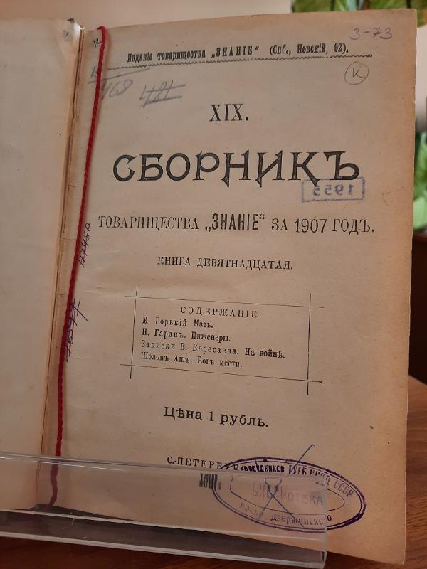 Представленные в экспозиции произведения иллюстрируют разные периоды и направления творчества классика. Среди них: «На войне» – записки, написанные в 1906–1907 годах по возвращении с фронта Русско-японской войны, где Вересаев служил врачом полевого госпиталя, и помещённые в сборниках Товарищества «Знание» за 1907 год. В состав литературного сборника «Друкарь» за 1910 год входит статья «Мне отмщение», посвящённая Л.Н. Толстому.