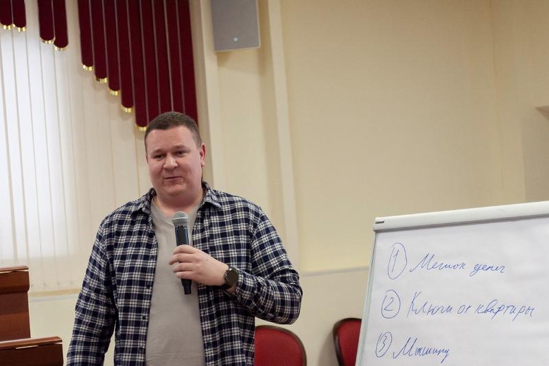 Тренинг «ТРИЗ, часть 5» вёл ТРИЗ-специалист второго уровня Александр Руссу. Спикером тренинга, посвящённого тайм-менеджменту, выступил кандидат экономических наук, доцент кафедры экономики и управления организациями, заместитель начальника управления науки, инноваций и информационной политики ВГУ Максим Гладких.