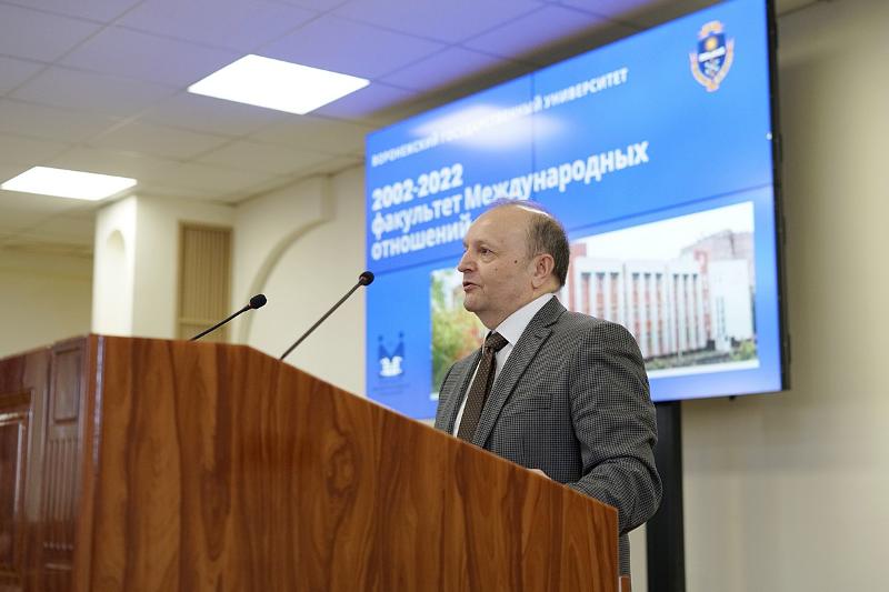 – 25 января 2002 года, в Татьянин день, в ВГУ родился новый, самый молодой сегодня факультет. Он появился из отдельной кафедры международных отношений и иностранных языков, располагавшейся на историческом факультете. Сегодня моё главное пожелание факультету – сохранить контакты. В сложившейся международной обстановке у нас всё равно есть основания для сдержанного оптимизма – надо только подождать.