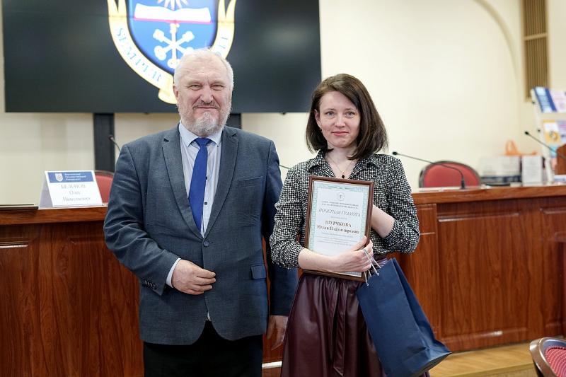 Преподавателям, сотрудникам и друзьям факультета были вручены благодарности и почётные грамоты от имени руководства ВГУ, региона и Торгово-промышленной палаты Воронежской области.