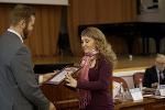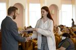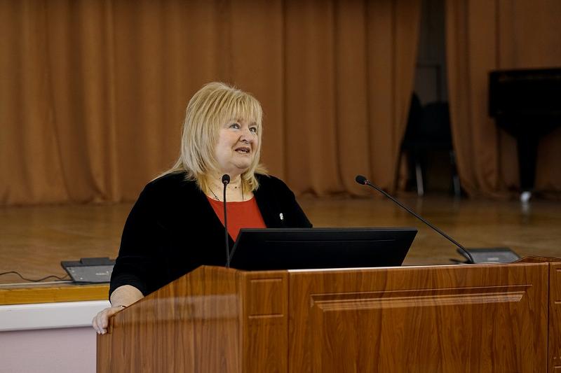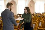 От лица Студенческого научного общества поблагодарила учителей и поздравила коллег с праздником студентка 4 курса геологического факультета, председатель СНО геологического факультета Светлана Блинова.