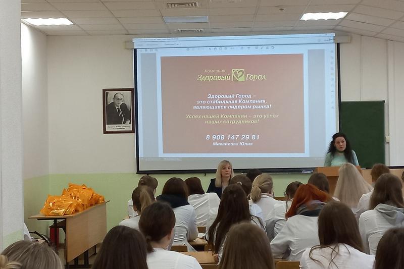 18 апреля в рамках Дня карьеры ВГУ на фармацевтическом факультете состоялась встреча студентов с представителями компании «Здоровый город»: менеджером по обучению Ольгой Супруновой и заведующей группой аптек Евгенией Вещеникиной. Они представили историческую справку аптечной сети, подробно рассказали о вакансиях, возможностях и перспективах карьерного роста, а также об особенностях компании и конкурентных преимуществах аптечной сети по сравнению с другими аптечными организациями Воронежа.
