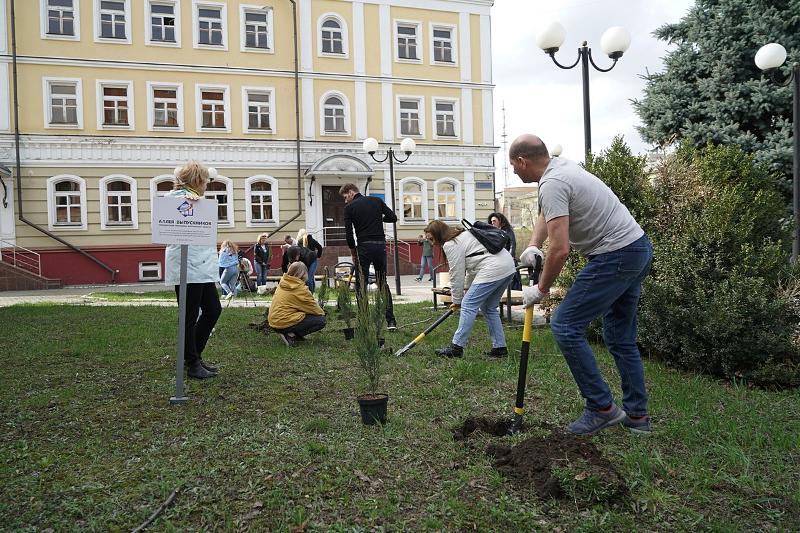 Активное участие в посадке аллеи принимали сотрудники Центра эффективности правительства Воронежской области, преподаватели и студенты экономического факультета.