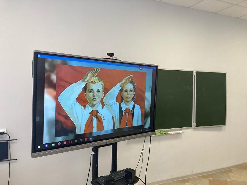 Ребятам был показан 4-минутный телевизионный сюжет, рассказывающий об истории пионерии, её целях, задачах, атрибутике, основных направлениях деятельности. Сюжет был подготовлен ученицей Анастасией Некрасовой.