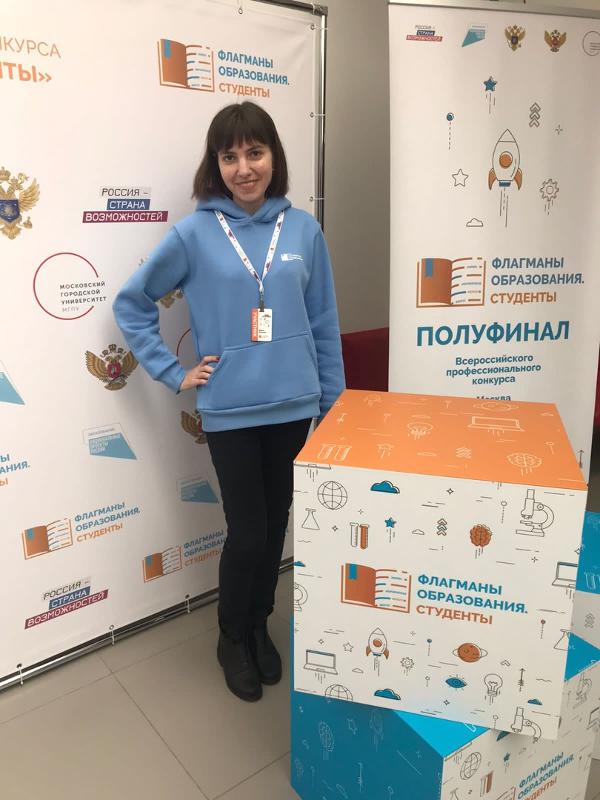 Аспирантка филологического факультета ВГУ Дарья Гальцова представила Воронежскую область в первом полуфинале Всероссийского профессионального конкурса «Флагманы образования. Студенты». Проект направлен на поиск, развитие и поддержку перспективных студентов вузов и колледжей. Конкурс был организован президентской платформой «Россия – страна возможностей» при поддержке Министерства просвещения РФ, Министерства науки и высшего образования РФ и Федерального агентства по делам молодёжи. Конкурс реализуется в рамках федерального проекта «Социальные лифты для каждого» национального проекта «Образование». Полуфинал проходил 21–23 апреля на площадке Московского городского педагогического университета.