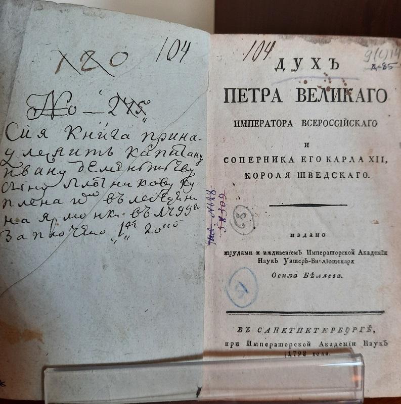 Одним из первых биографов и историков Петра I был П.Н. Крекшин (1689–1763). На выставке можно ознакомиться с «Кратким описанием славных и достопамятных дел Петра Великого…» (1789).