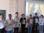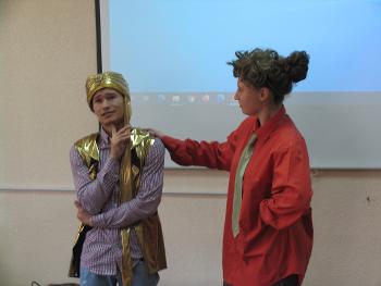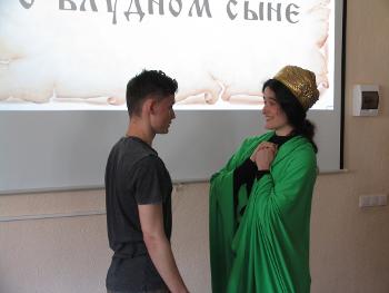 А вот первокурсники с театрализованной «Притчей о блудном сыне» на старославянском. Старославянский – удивительный язык: на нëм никто никогда не общался. Ни в Древней Руси, ни раньше, ни позже. Он был письменным, общим для всех славян – как раз тем объединяющим началом. На нëм писали книги и служили в церкви.