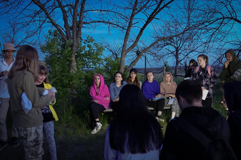 – Мы фиксировали свои ощущения, давали названия оттенкам неба и леса, обращались к памяти (что там за населённый пункт был на карте?), слушали звуки природы и машин, угадывали животных по голосам, травы по запаху, а небольшие природные предметы-находки – по тактильному описанию от товарищей. Мы пили горячий чай, пели песни под гитару и искали на небе знакомые созвездия, – прокомментировал студент второго курса Даниил Пименов.