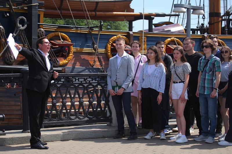 Ректор ВГУ Дмитрий Ендовицкий прочёл лекцию для студентов вуза на «Гото Предестинации». Ребята познакомились с кораблестроением петровской эпохи, а также образом жизни морских офицеров. Кроме того, они поднялись на борт копии первого российского линейного корабля.