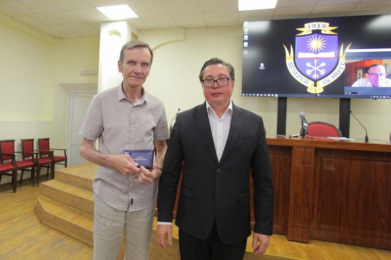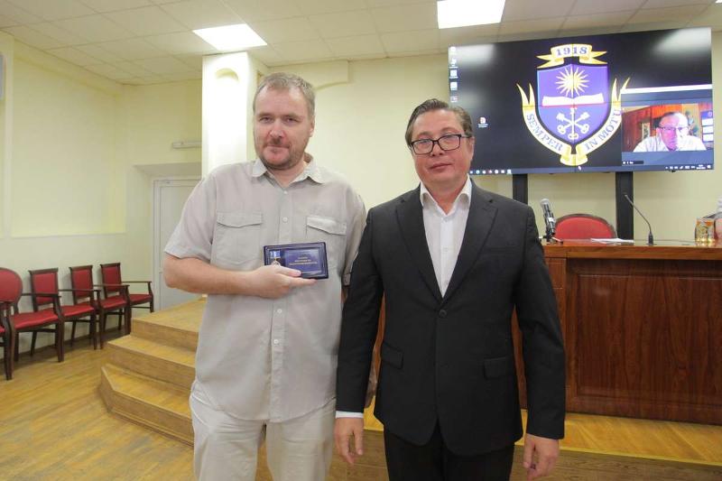 4 июля в конференц-зале ВГУ состоялся последний в этом учебном году Учёный совет. Ректор вуза Дмитрий Ендовицкий вручил знаки «За заслуги перед ВГУ» начальнику управления по довузовской работе и набору студентов Александру Макушину и доценту кафедры информационных систем факультета компьютерных наук Вадиму Фертикову.