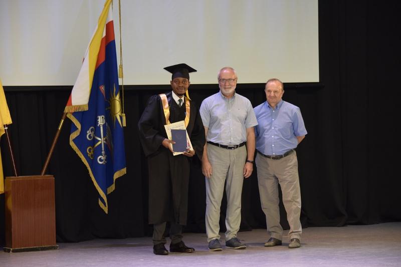 – Мы гордимся тем, что выпускаем не просто профессиональный продукт, то есть людей, которые идут в профессию, – мы гордимся ещё и тем, что мы выпускаем личностей: людей, сформированных не только в профессиональном отношении, но и получивших в период обучения совершенно уникальные навыки обучения в международной образовательной среде; людей, для которых мир открыт; людей, для которых люди – братья; людей, которые не видят национальных, политических, этнических различий. Мы гордимся тем, что Россия смогла создать для вас условия высокого профессионального образования, – отметил Владимир Родионов.