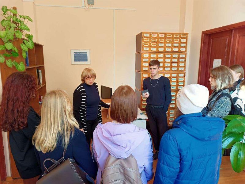 Сотрудник информационно-библиографического отдела, ведущий библиограф Ольга Товицкая рассказала студентам о специфике работы отдела, основах библиотечно-библиографических знаний и формировании библиографических списков, а также о работе с сайтом научной библиотеки ВГУ. Сотрудник отдела редких книг, ведущий библиограф Ирина Подкопаева познакомила ребят с работой по изучению и описанию редкой части фонда для исследования истории книги, истории печатного дела в области, а также истории университета и библиотеки.