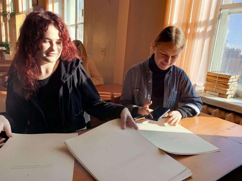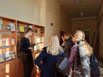 В отделении художественной литературы студенты познакомились со знаковыми иллюстрированными книгами и альбомами по искусству, альбомами живописи и репринтной графики Рембрандта, акварелями Врубеля по мотивам произведений Лермонтова, графикой Петрова-Водкина. Просмотр альбомов сопровождался лекцией о методах работы и собрании фонда отделения художественной литературы, которую провёл библиотекарь первой категории Юрий Малик.