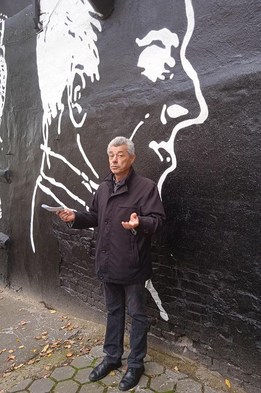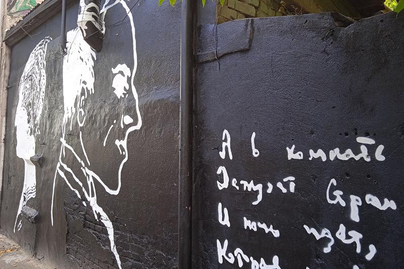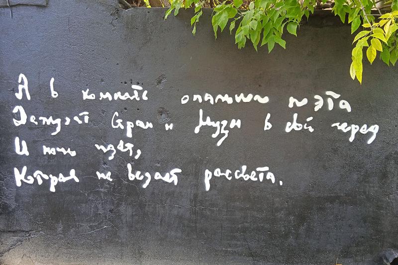 Презентуемая аудиоплощадка была подготовлена стрит-арт художником Яном Посадским. Визуальным воплощением проекта стало изображение профилей двух поэтов. Как пояснил автор работы, за основу были взяты силуэты, выполненные ссыльным литератором Сергеем Рудаковым.