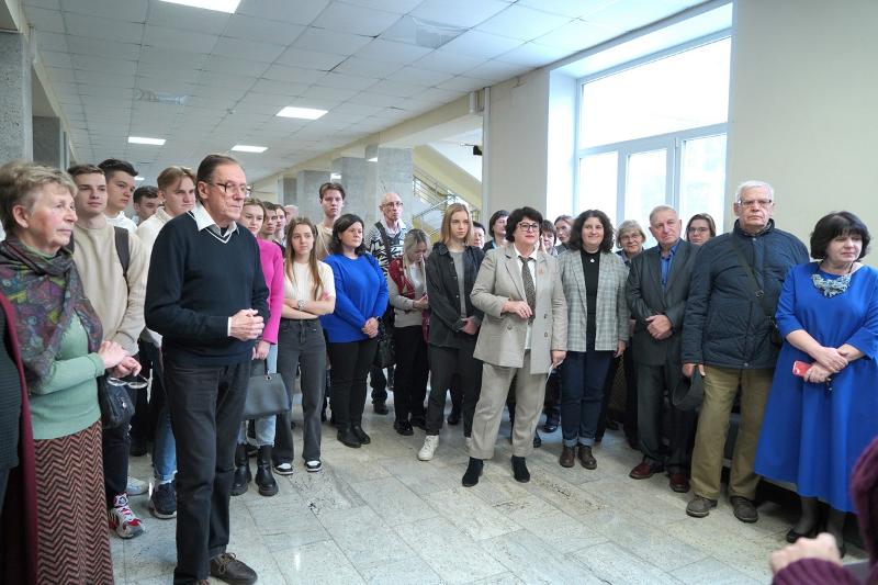 16 ноября в преддверии Дня преподавателя высшей школы в холле первого этажа Главного корпуса ВГУ состоялось открытие выставки «Иосиф Абрамович Стернин: Учёный. Просветитель. Человек». На открытие выставки пришли друзья, коллеги, ученики Иосифа Абрамовича, а также воронежцы – слушатели передачи «Территория слова», которую долгие годы Иосиф Абрамович вел на областном радио.
