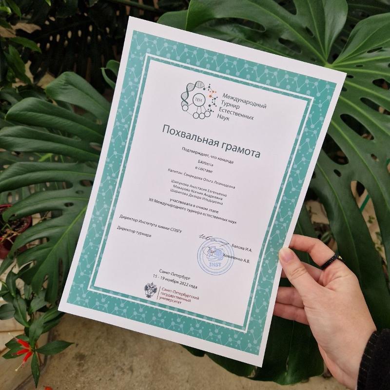 С 15 по 19 ноября на базе Санкт-Петербургского государственного университета состоялся XII Международный Турнир Естественных Наук. В нём приняли участие 12 команд из разных городов России. Представителем одной из них стала студентка фармацевтического факультета ВГУ Ольга Свиридова.