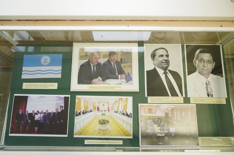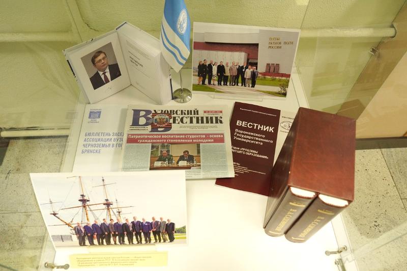 В Воронежском государственном университете 25 ноября открылась выставка, посвящённая 30-летию Российского Союза ректоров (РСР). Экспозиция, созданная по решению Совета ректоров вузов Воронежской области, размещена на втором этаже главного корпуса, возле входа в музей истории ВГУ.