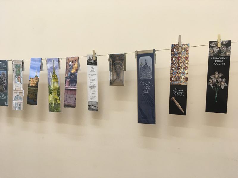 Предпочтение в экспозиции отдали закладкам с изображением книг, переплётов, форзацев, экслибрисов, портретов писателей и композиторов. Отдельную группу составили экспонаты, рассказывающие о сокровищах музеев со всей страны: Музей Московского Кремля, Эрмитаж, Музей-заповедник Тургенева «Спасское-Лутовиново», Государственный литературно-мемориальный музей-заповедник Некрасова «Карабиха», Музей-усадьба Толстого «Ясная Поляна», Воронежский областной художественный музей имени Крамского, Государственный археологический музей-заповедник «Костёнки», Воронежский государственный природный биосферный заповедник имени Пескова. На выставке можно увидеть закладки с изображением животных, сюжетов из сказок. Также интересны зарубежные закладки из Польши и Японии.