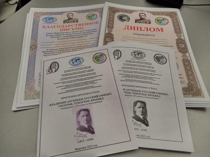 Указом президента от 1.11.2021 № 620 2022 год был объявлен годом празднования 150-летия со дня рождения великого путешественника, писателя и исследователя Владимира Клавдиевича Арсеньева, который внёс большой вклад в изучение природы и народов Дальнего Востока. 8 декабря Воронежское отделение Русского географического общества при содействии областной универсальной научной библиотеки имени И.С. Никитина провело круглый стол «Владимир Арсеньев: русский офицер, географ, этнограф, краевед», завершающий цикл мероприятий, посвящённых учёному.