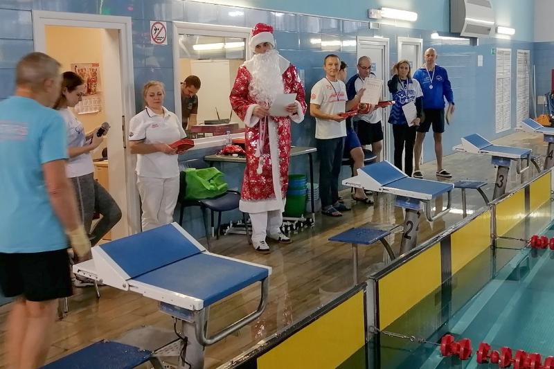Уже в пятый раз абсолютным победителем стала тренер бассейна ВГУ Татьяна Прокофьева. Юрий Перин выполнял обязанности технического делегата федерации плавания «Мастерс» России и Деда Мороза.