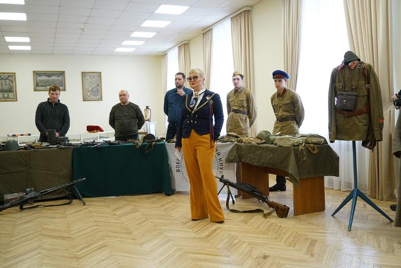Члены клубов выступили перед гостями в военной форме, идентичной времени представленных на выставке предметов, рассказав о них.