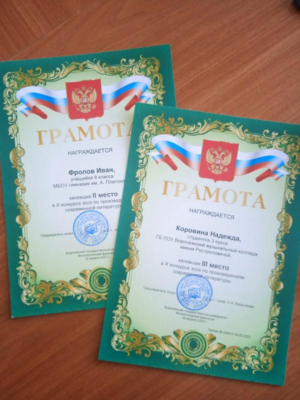 На конкурс поступили эссе учащихся школ из Воронежа и Воронежской области (Анны, Давыдовки, Лисок и др.). В конкурсе традиционно принимали участие студенты младших курсов, получающие среднее профессиональное образование.