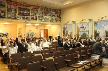 В роли депутатов выступили учащиеся гимназии при наставничестве студентов-политологов. Участники игры смоделировали процесс принятия законопроекта по отмене ЕГЭ. Во время игры участники представляли позицию своей команды-партии, а также приводили аргументы по принятию или непринятию. По окончанию выступлений состоялось голосование депутатов, большинством голосов законопроект был принят в третьем чтении.