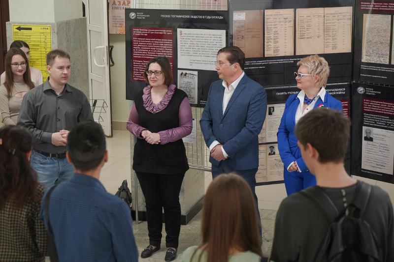 На открытии присутствовали студенты, преподаватели и представители руководства факультета ГГиТ. Гостей приветствовали руководители музейно-выставочного центра: заведующая Александра Степынина и главный хранитель фондов Анжелика Макарова. От выступающих слушатели узнали о том, как члены Географического общества читали лекции по географии на фронте в блиндажах и землянках, участвовали в прокладке «Дороги жизни», вели научные исследования.