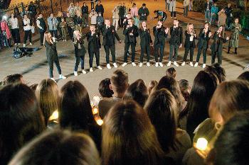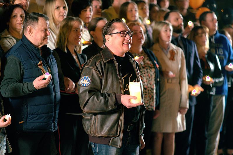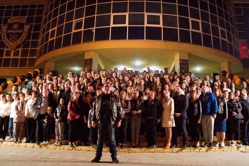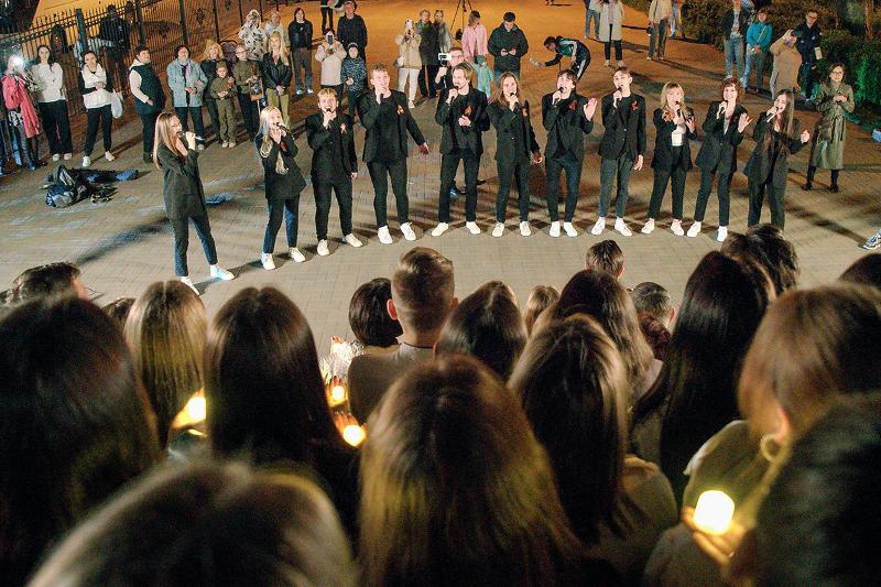 На лестнице экономического факультета собрались более 150 человек: преподаватели, студенты и их семьи. Хор ВГУ спел «Здесь птицы не поют», «Смуглянка», «День Победы», «Катюша».... У каждого участника в руках была зажжённая свеча, а на груди – георгиевская ленточка – символ памяти о погибших в годы Великой Отечественной войны.