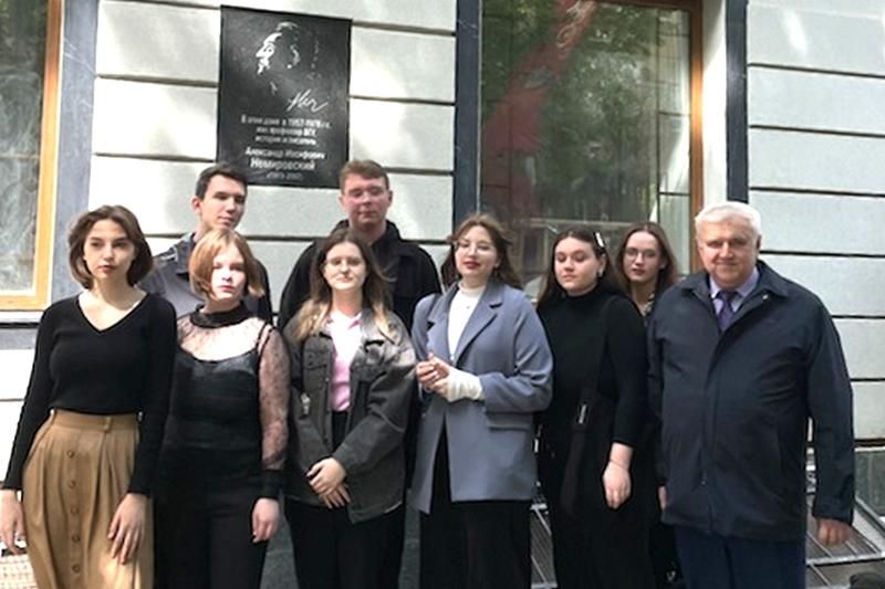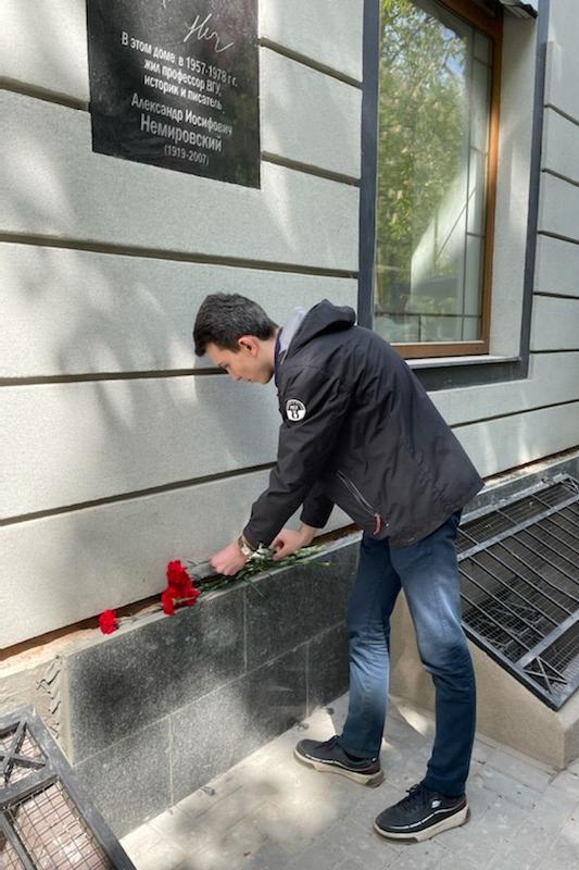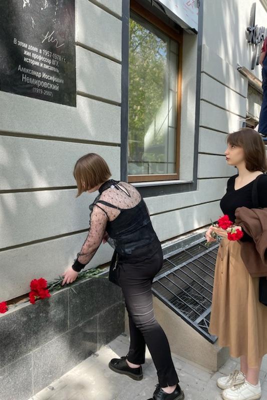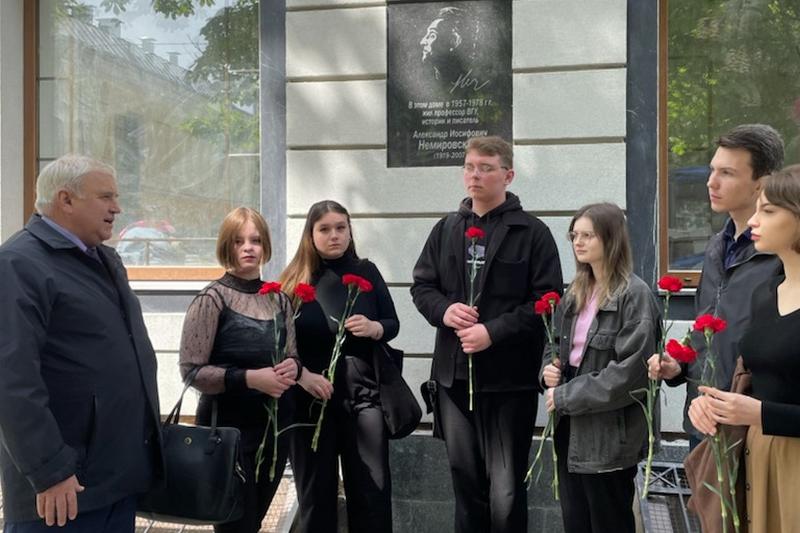 Студенты исторического факультета возложили цветы к мемориальной доске, посвящённой профессору ВГУ, участнику Великой Отечественной войны Александру Иосифовичу Немировскому.