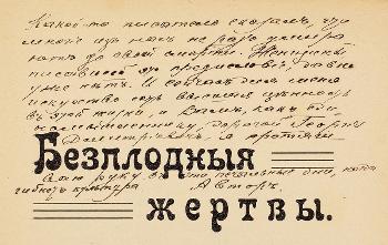 Прозвучал рассказ об экземпляре пьесы А.А. Вербицкой «Бесплодные жертвы» (Москва, 1906). В начале XX века Анастасия Алексеевна Вербицкая (1861–1928), уроженка Воронежа, была известной писательницей, её произведения пользовались невероятным успехом. По масштабам читательской аудитории она опережала даже Льва Толстого. В библиотеках книги Вербицкой были нарасхват и переиздавались большими тиражами. Наш экземпляр примечателен тем, что имеет дарственную надпись автора.