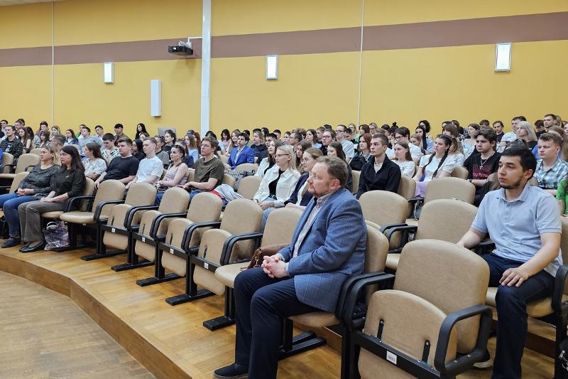 Актовый зал юридического факультета был полон. На мероприятии присутствовали преподаватели и студенты юридического факультета, факультета международных отношений, факультета географии, геоэкологии и туризма.