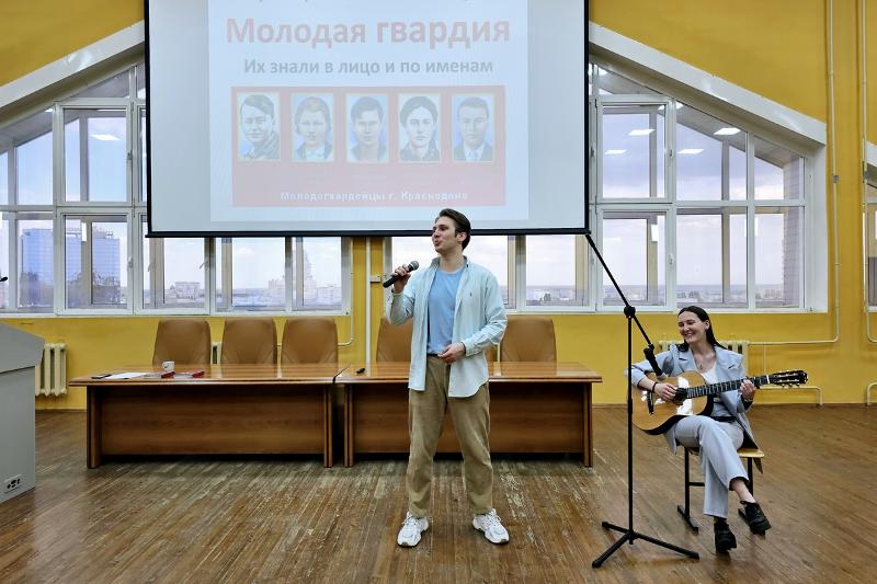 Студенты узнали историю подпольной комсомольской организации «Молодая гвардия», участниками которой были их ровесники из Краснодона, оккупированного фашистами в 1942 году. Молодогвардейцы самостоятельно боролись с захватчиками, были разоблачены фашистами, подвергнуты жесточайшим пыткам и казнены. Ряд молодогвардейцев имеют звания Героев СССР (посмертно), в их честь названы улицы во многих городах, в том числе – в Юго-Западном районе Воронежа.