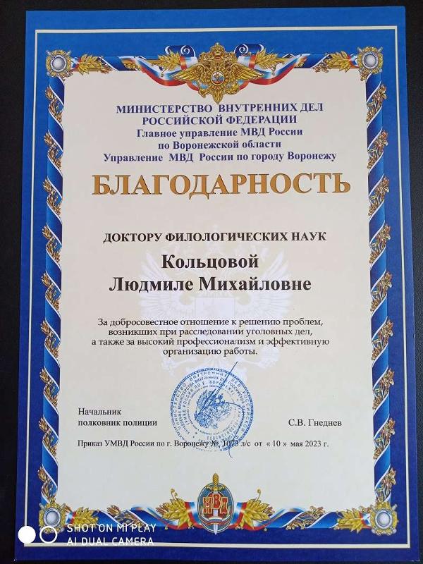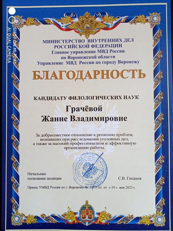 Сотрудникам филологического факультета ВГУ объявлена благодарность от силовых структур Воронежа и области. В число ведомств вошли Главное управление МВД России по Воронежской области, Управление МВД России по Воронежской области и Управление МВД России по Воронежу в лице начальника полиции полковника Сергея Гнеднева.