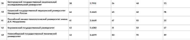 ВГУ вошёл в рейтинг лучших вузов России RAEX-100, который входит в семейство рейтингов «Три миссии университета». Вуз улучшил свои позиции по сравнению с прошлым годом и поднялся на 42-ю строчку. Из воронежских вузов в рейтинг также попал ВГМУ имени Бурденко, заняв 90-е место. Всего в топ-100 вошли университеты из 29 регионов России.