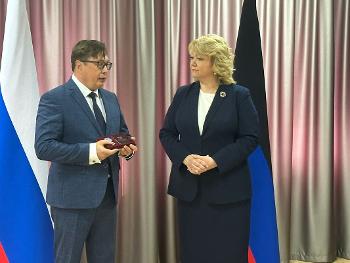 Награждение состоялось в Представительстве ДНР в Москве. Награду ректору ВГУ вручила Чрезвычайный и Полномочный Посол ДНР в России Ольга Макеева.