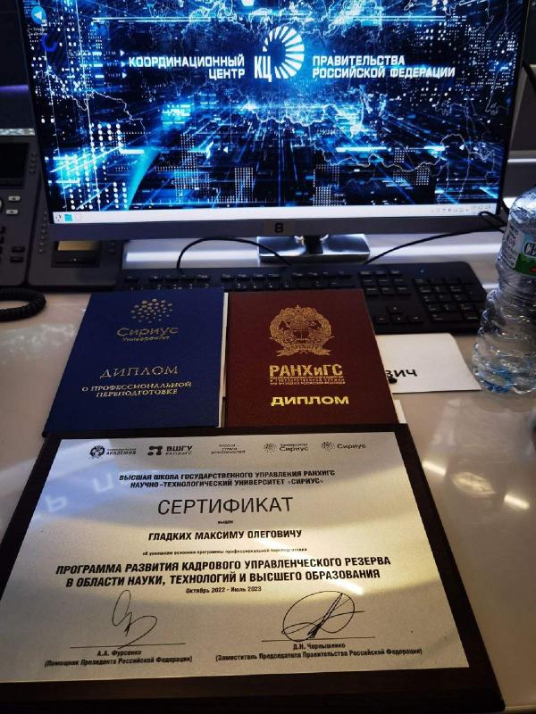 С этой целью по поручению президента была реализована программа развития кадрового резерва в области науки и высшего образования. Знания и дипломы, которые я получил, – это не только высокая честь, но и большая ответственность за достижение значимых, быстрых и долгосрочных результатов в развитии образования, науки и технологий, – подчеркнул Максим Гладких.