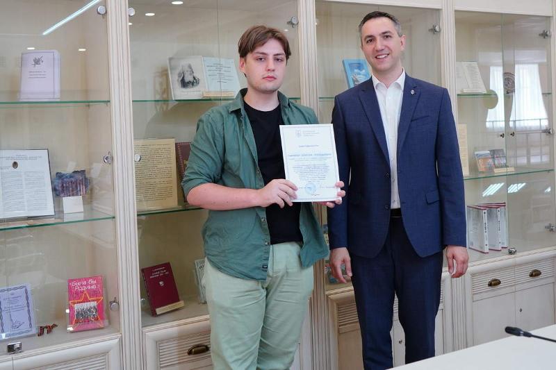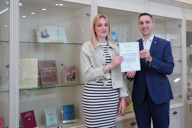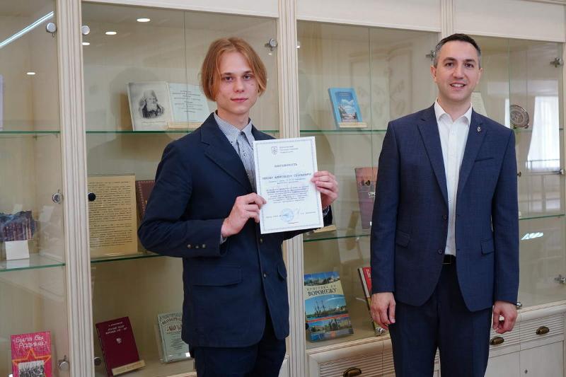 10 июля студенты университета получили благодарности ректора ВГУ Дмитрия Ендовицкого за участие в научно-просветительском межфакультетском проекте ВГУ «Афроевразийская одиссея русского учёного, физика Н.Г. Нифонтова». Дипломы вручили четверокурснику факультета РГФ Алексею Сафонову и магистрантке первого курса химфака Полине Васильевой – за перевод с французского на русский язык архивных материалов.