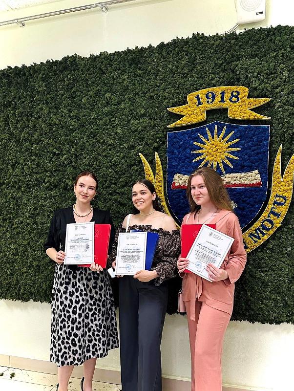 Выпускники кафедры французской филологии Дарья Данко, Ульяна Карташова и Елизавета Пылаева получили благодарности ректора ВГУ за перевод с французского на русский язык архивных материалов в научно-просветительском межфакультетском проекте ВГУ «Афроевразийская одиссея русского учёного, физика Н.Г. Нифонтова» вместе с дипломами специалистов.