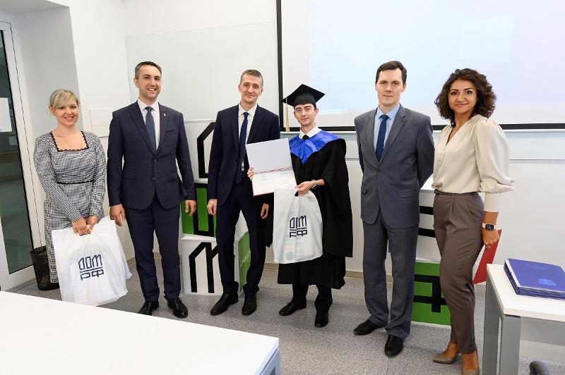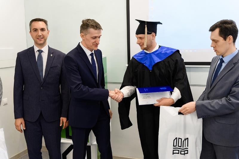 Выпускников поздравили проректор по науке, инновациям и цифровизации ВГУ Дмитрий Костин, начальник управления инновационной деятельности ВГУ Дмитрий Жукалин, представители «ДОМ.РФ» – генеральный директор Центра Сопровождения Алексей Шипилов, директор управления персоналом Евгения Пархоменко и руководитель центра развития карьеры и бренда работодателя Екатерина Романенко. Партнёры отметили высокий уровень подготовки магистров, большинство из которых уже работает в «ДОМ.РФ».
