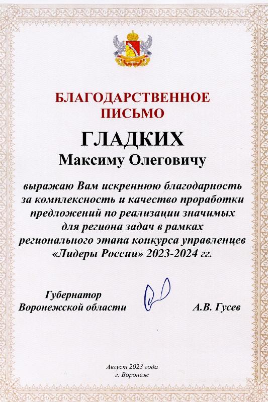 Руководитель проектного офиса ВГУ, заместитель начальника управления инновационной деятельности, доцент Максим Гладких вместе с командой стал финалистом «Лидеров России» по ЦФО. Максим вошел в топ-30 представителей Воронежской области. Всего на конкурс подали 1681 заявку.