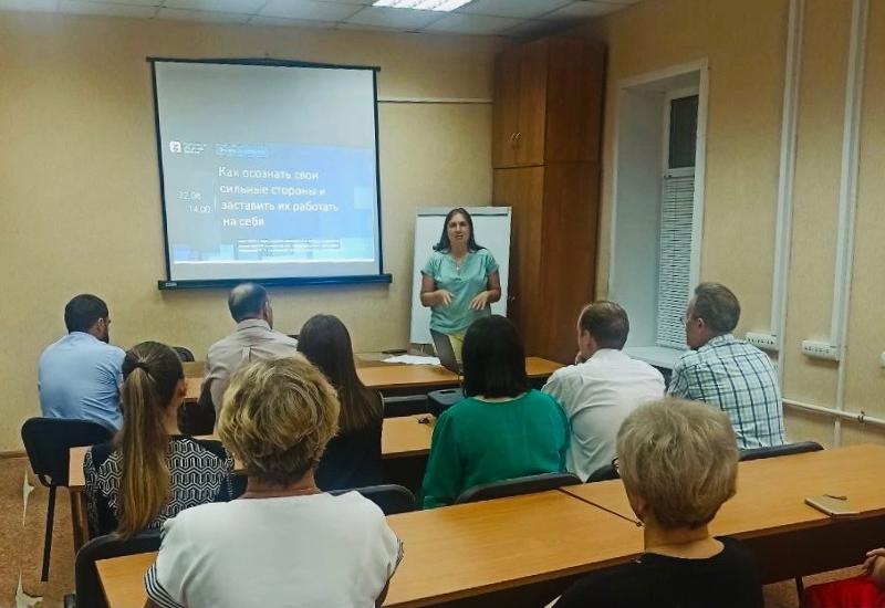 Преподаватель ФиПси представила доклад: «Как осознать свои сильные стороны и заставить их работать на себя». Ольга Иванова обозначила качества, которые являются сильными» в профессиональной деятельности: ориентированность на новое, стрессоустойчивость, стремление лидировать и взаимодействовать в коллективе. Спикер рассказала о психофизиологических основах стресса, механизмах повышения стрессоустойчивости, полезности короткого стресса для мобилизации ресурсов и активного познания. Лектор отметила важность ощущения успеха в тех моментах, где проявляется сильная сторона человека, включения процессов памяти на эти удачные ситуации. Ольга Анатольевна обсудила с участниками возможные ресурсные сферы жизни, на которые стоит обратить внимание каждому.