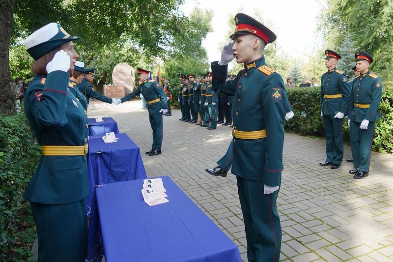 После зачитывания приказа министра обороны от 1 сентября 2023 года о присвоении званий лейтенантов и назначениях на воинские должности выпускникам ВУЦ были вручены первые офицерские погоны.