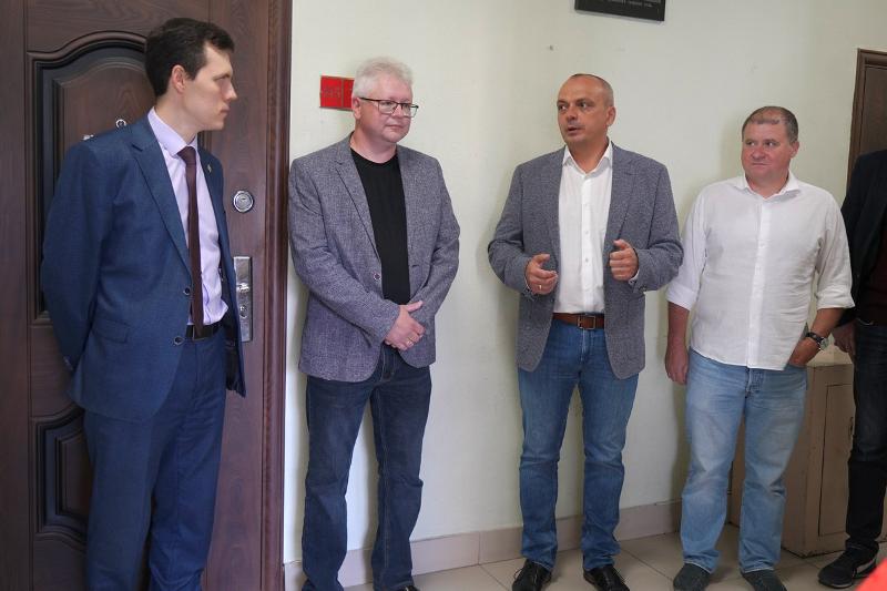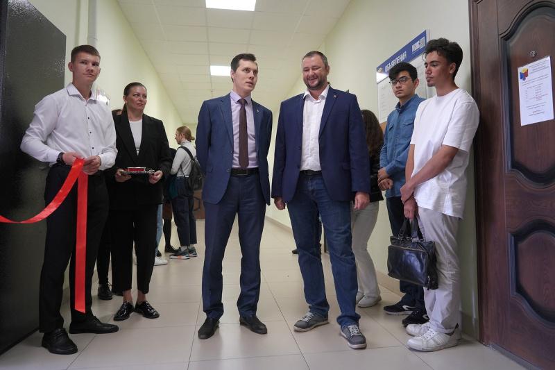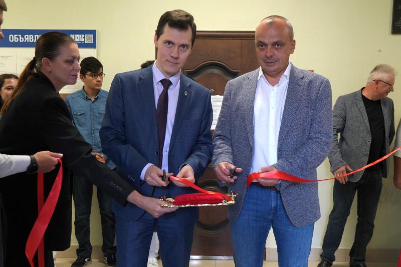 7 сентября на факультете ПММ открылся Центр корпоративной подготовки компании Neoflex. Ленточку перед обновлённой аудиторией № 214 на втором этаже главного корпуса перерезали генеральный директор Neoflex Олег Рубан и проректор по науке, инновациям и цифровизации ВГУ Дмитрий Костин.