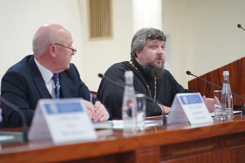 Ректор Воронежской духовной семинарии Воронежской Епархии Русской православной Церкви иерей Роман Ткачев выступил с докладом «Духовные аспекты сохранения и приумножения историко-культурного наследия народов России». В проведении экспертной сессии принял участие и председатель централизованной религиозной организации «Духовное управление мусульман Воронежской области», доктор исламских наук Рашид Алимурадов. Тема его доклада – «Традиции морально-нравственного воспитания в мусульманских семьях».