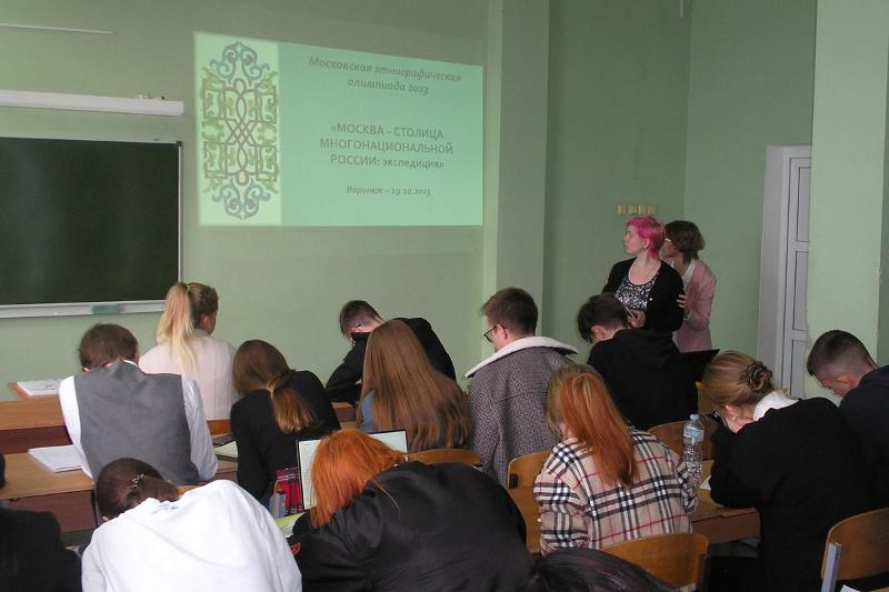 19 октября 2023 года в Воронежском государственном университете прошла олимпиада по этнографии в рамках проекта «Москва – столица многонациональной России: экспедиция в вузах различных регионов РФ». Организаторами мероприятия выступили Московский педагогический государственный университет (МПГУ) и Центр содействия межнациональному образованию «Этносфера» (город Москва).