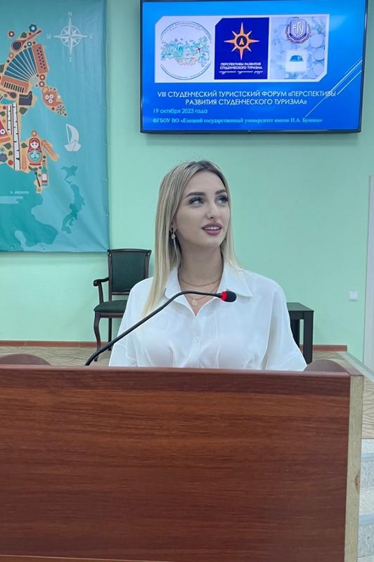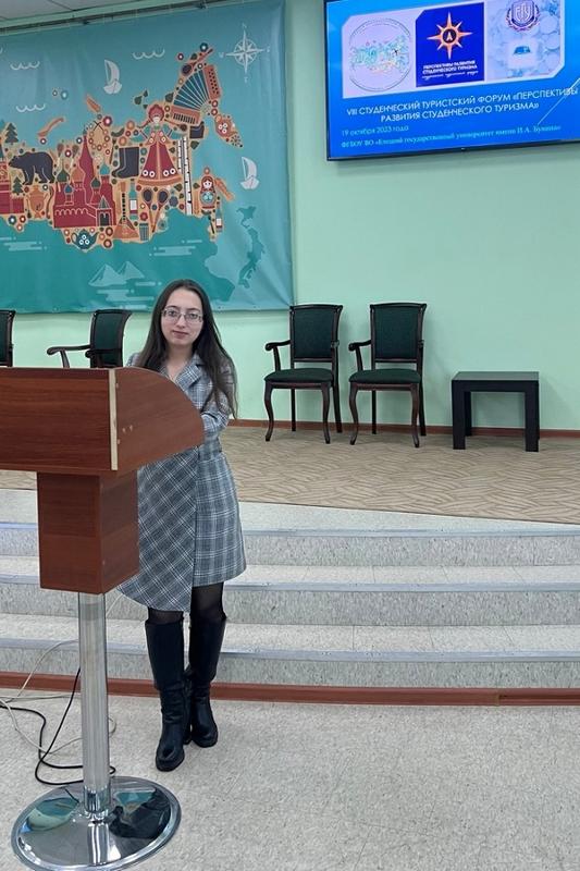 Магистранты факультета географии, геоэкологии и туризма Анастасия Дегтяренко, Айсенем Овганова и Анастасия Синодя под руководством профессора кафедры рекреационной географии, страноведения и туризма Натальи Дороховой приняли участие в VIII Всероссийском студенческом туристском форуме «Перспективы развития студенческого туризма», состоявшемся в ФГБОУ ВО «Елецкий государственный университет им. И.А. Бунина».