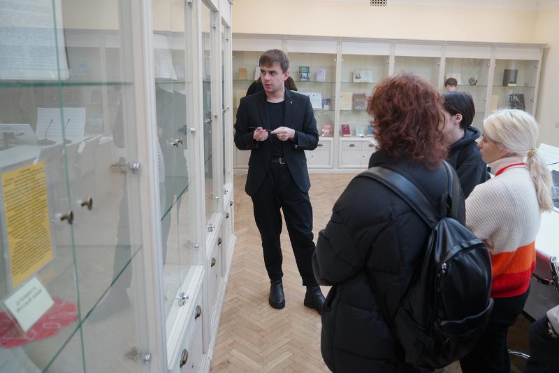 30 ноября 2023 года в Белом зале главного корпуса ВГУ прошла тематическая экскурсия для студентов 1 курса филологического факультета направления «Библиотечно-информационная деятельность» по книжно-иллюстративной выставке «Святитель Митрофан: Воронежский чудотворец». Выставка посвящена 400-летию со дня рождения святителя Митрофана, первого Воронежского епископа.