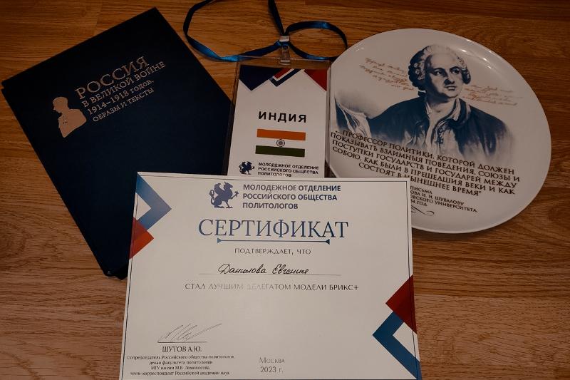 – После представления позиции страны наша делегация объединилась в коалицию с делегациями Бразилии, Объединенных Арабских Эмиратов и Южно-Африканской Республики для составления общей резолюции, которую приняли в результате общего голосования. Отдельно хочется отметить, что мне выпала честь получить звание лучшего делегата «Модели БРИКС+». Участие в данном мероприятии позволило мне значительно улучшить навыки ораторского мастерства и усовершенствовать умение отстаивать собственную точку зрения. Также я приобрела новые знакомства, пообщалась с целеустремленными людьми, которые разделяют мои взгляды на жизнь, – поделилась Евгения Данилова.