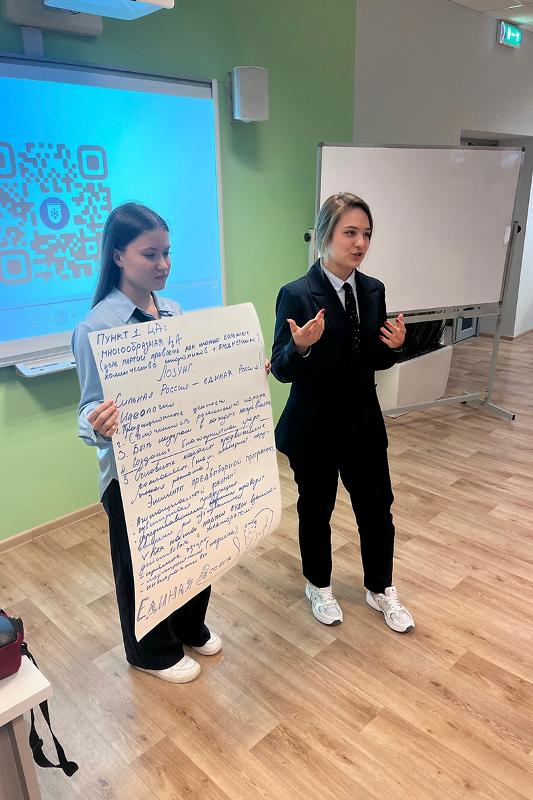 Ребята поделились на группы под руководством наставников-студентов, выбрали парламентскую партию и составили для неё стратегию продвижения на выборах. В ходе активных обсуждений ребята опробовали различные подходы к проведению кампании, а затем защитили свои проекты и ответили на острые вопросы других команд.